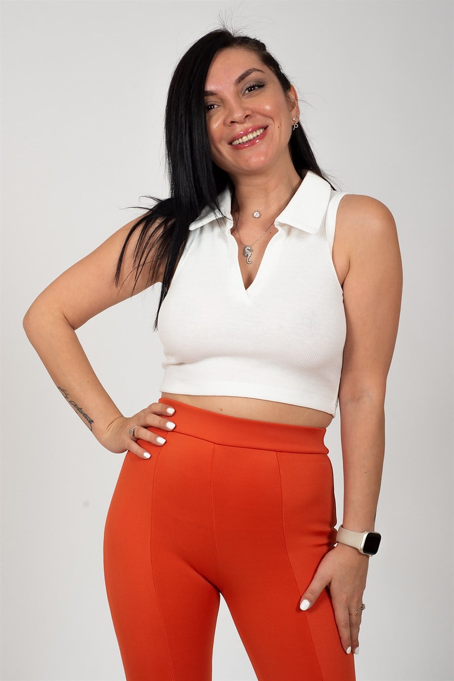 Beyaz V Dekolte Yakalı Kaşkorse Bluz (BP1480)