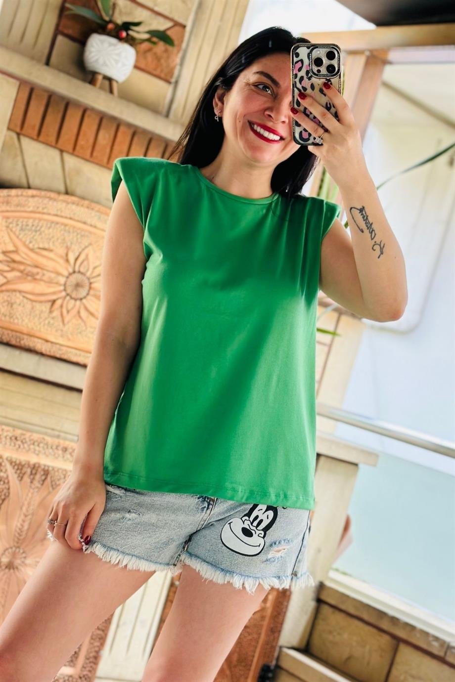 Bisiklet Yaka Omuz Vatkalı Bluz ZÜMRÜT YEŞİL (MZR20696)