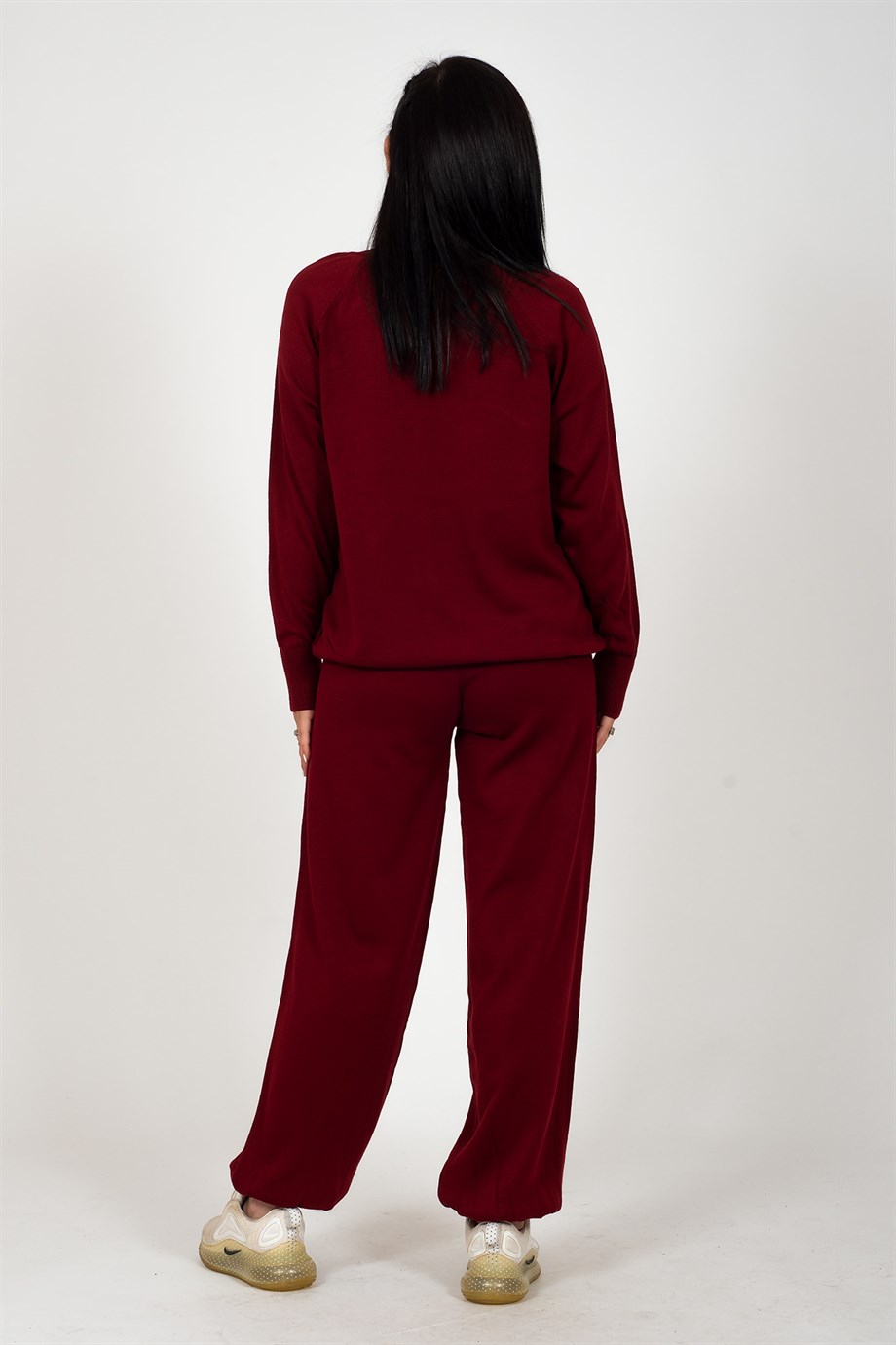 Bordo Dik Yaka Pamuklu Şalvar Paça Triko 2'li Takım (BP1277)