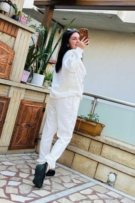 İçi Şardonlu Cepli Bel Ve Bilek Lastikli Eşofman BEYAZ