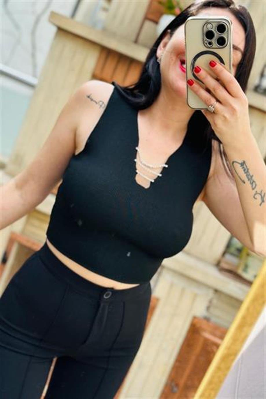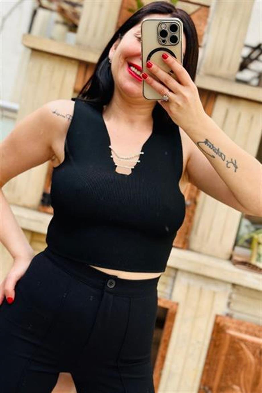 Kalın Askılı Taş Detaylı Trko Bluz SİYAH (KNZ2621)