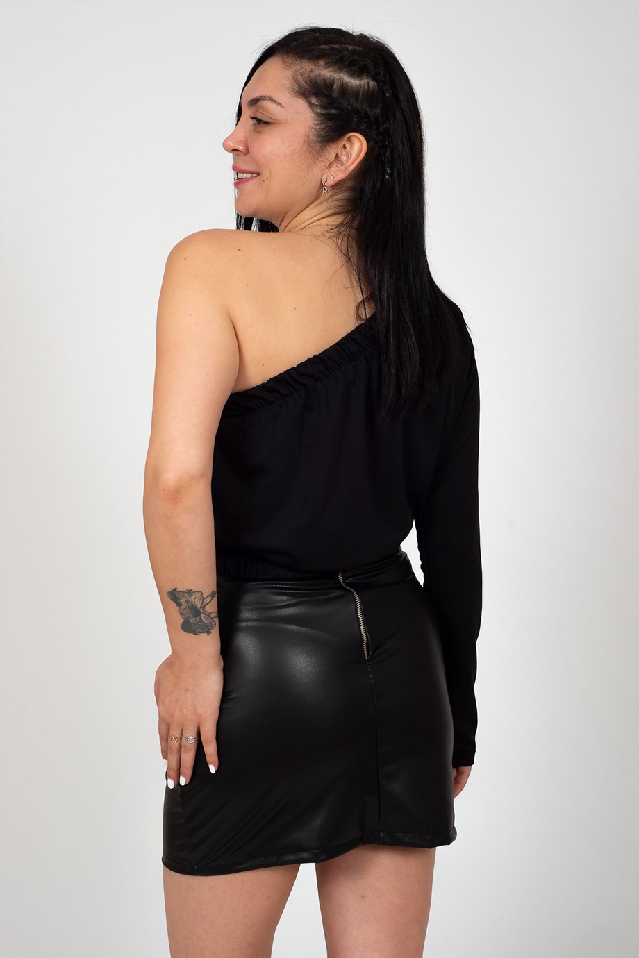 Siyah Tek Omuz Uzun Kol Bel Lastik Bluz (BP1458)